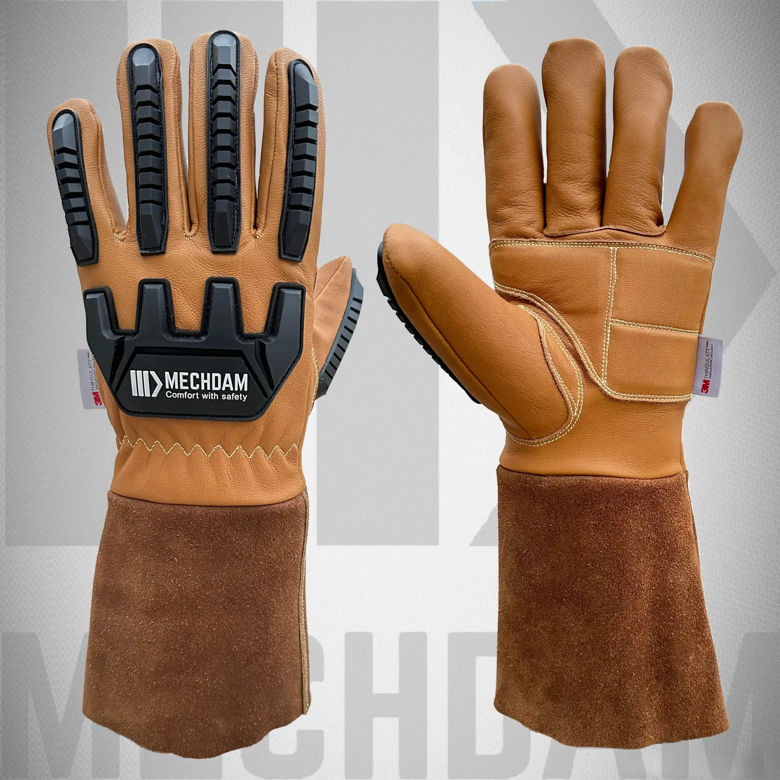 As a specialized insulated oil block leather impact gloves manufacturer, Mechdam Enterprises offers OEM and private-label manufacturing for brands and distributors. Customization options include cut resistance levels (A1–A9), impact protection levels (1–3), insulation weight, cuff materials, colors, sizing, branding, and packaging.